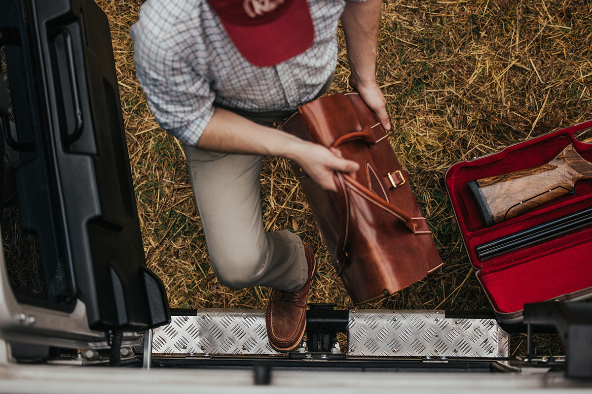 Whether you shoot Five Stand, Skeet, Sporting Clays, Dove, Quail or Pheasant, you’ll appreciate the intuitive features and rugged construction of our signature Wingshooter's Cartridge Bag. Attaches to your favorite belt on either the right or left side seam and has a center belt loop cut out for perfect positioning on any belt up to 2" in width. For those who like to look coordinated and especially handsome, our Kingfisher Plantation Cut Belt is specifically designed with the same heavy leather for use with this Cartridge Bag. Designed to hold a full box of 2 and 3/4" shotgun shells (25 shells) it allows the shooter greater mobility and comfort in the field. Many a measurement was taken so that our Cartridge Bag hangs at the perfect height where a jacket or shooting vest will not hinder access but high enough so that shells won't spill while sitting. Handcrafted by our American artisans with full-grain vegetable tanned equestrian leathers, it is built to endure for generations.