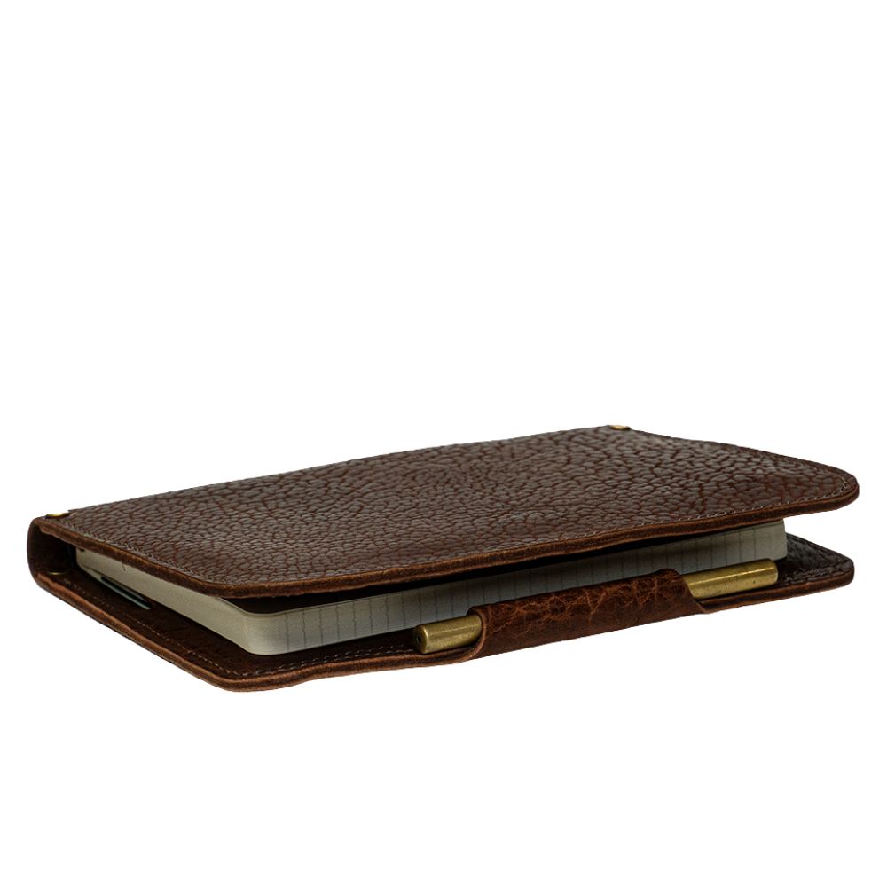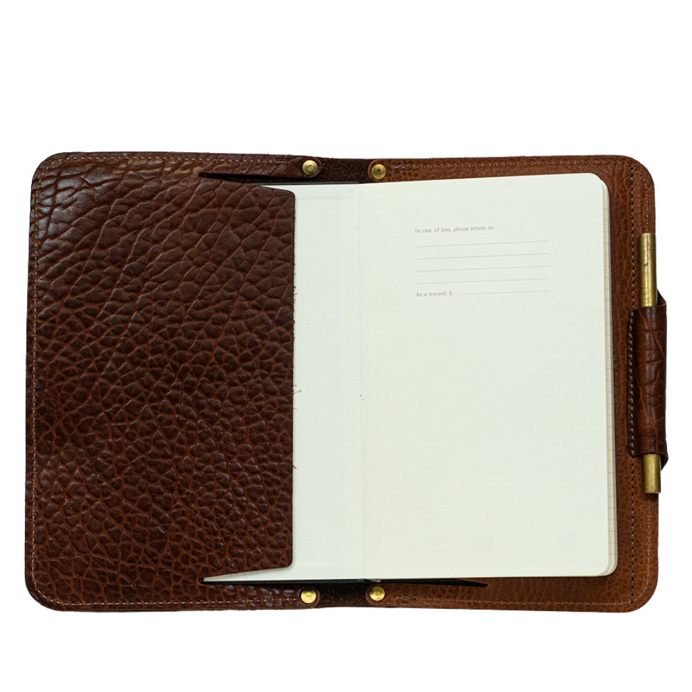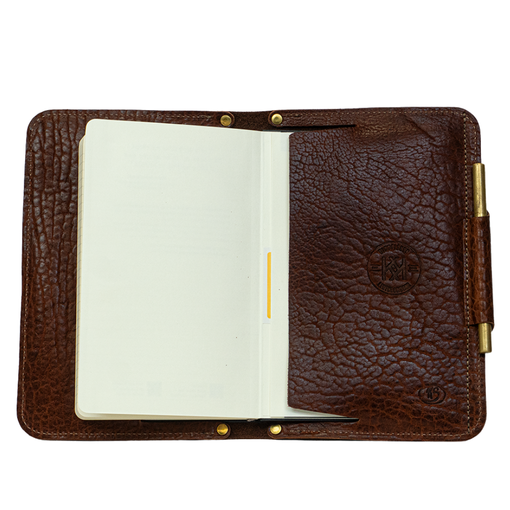 The Executive Notebook is the perfect size for meetings, class notes, and journaling. Comes with a standard ruled Moleskine notebook and is refillable. The pen slip is conveniently located directly to the right of the notebook.