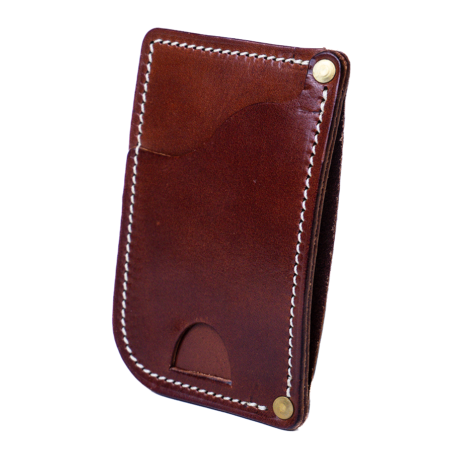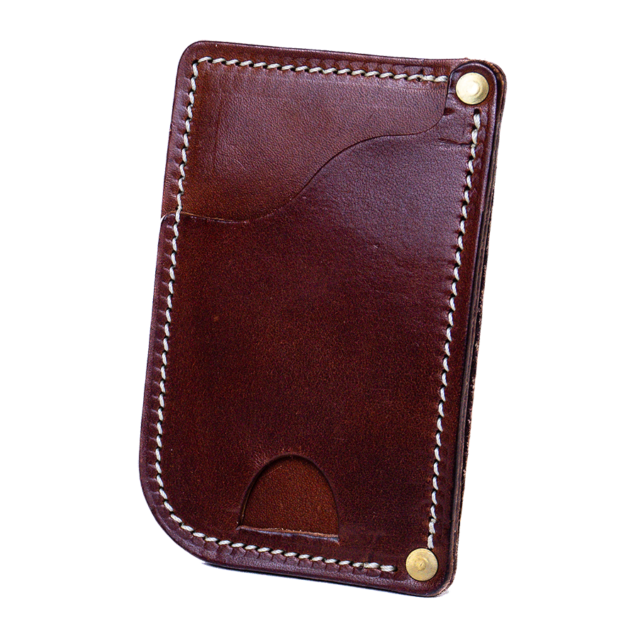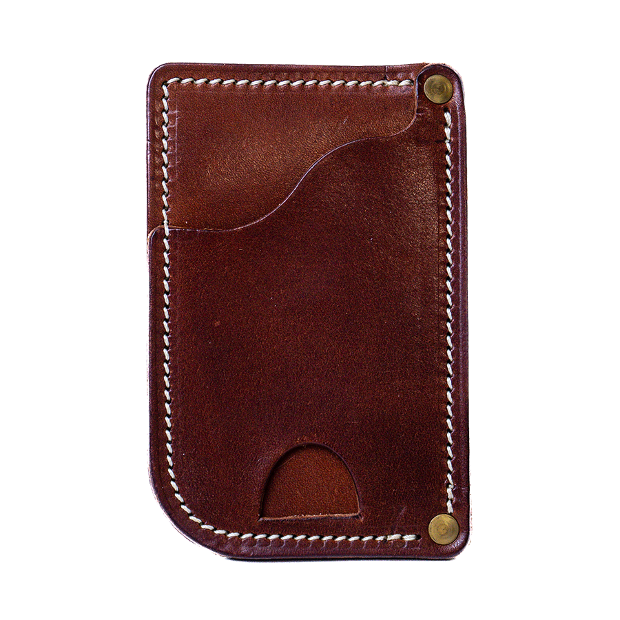 After driving long distances sitting on a wallet, I decided that for back health I should start putting my wallet in a front pocket. After years of design and testing, I have perfected this design into the most functional wallet for front pocket use. Room for plenty of cards and cash with its two pockets and easy access to your most used cards in the front. The thumb slot in the bottom allows you to push cards up out of the front pocket for even greater ease of access. Handcrafted by our American artisans with full-grain Harness leathers, it is built to endure for generations.