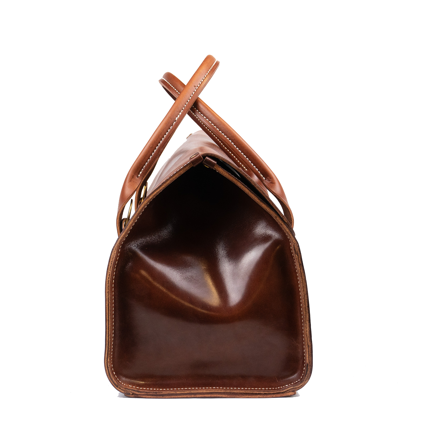 Our bags are made without a cloth lining that would catch stains and smells over time. Instead our baseplate and pockets are made from the same leather as the exterior for a truly all-leather product. Though it exudes aristocracy, it is rugged enough to be used daily for its original purpose as a Doctor's bag. My original design draws on historical style, and elements from banker's and doctor’s bags to create classic lines that are masculine in form but have enough poise to look equally striking when carried by a woman. Handcrafted by our Mater American craftsmen with full-grain vegetable tanned equestrian leathers, it is built to endure for generations.